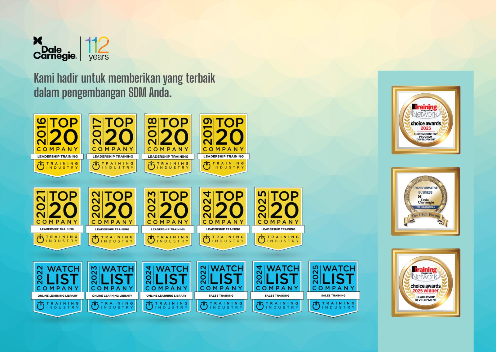 Untuk meraih keuntungan yang terus menerus sehingga mendorong pertumbuhan jangka panjang bagi organisasi setiap orang dalam tim harus berkompeten, bersemangat, dan berkomitmen. Di Dale Carnegie, kami mengembangkan karyawan dengan menggali kekuatan alami mereka, membangun keberanian dan kepercayaan diri yang mereka butuhkan untuk mengambil alih kendali atas peran mereka dan mencapai prestasi di luar dugaan. Ketika kami membantu individu untuk bertumbuh, mereka mendapatkan kepercayaan dan rasa hormat dari orang-orang di sekitar mereka, menciptakan budaya yang berlaku di semua tingkatan organisasi.